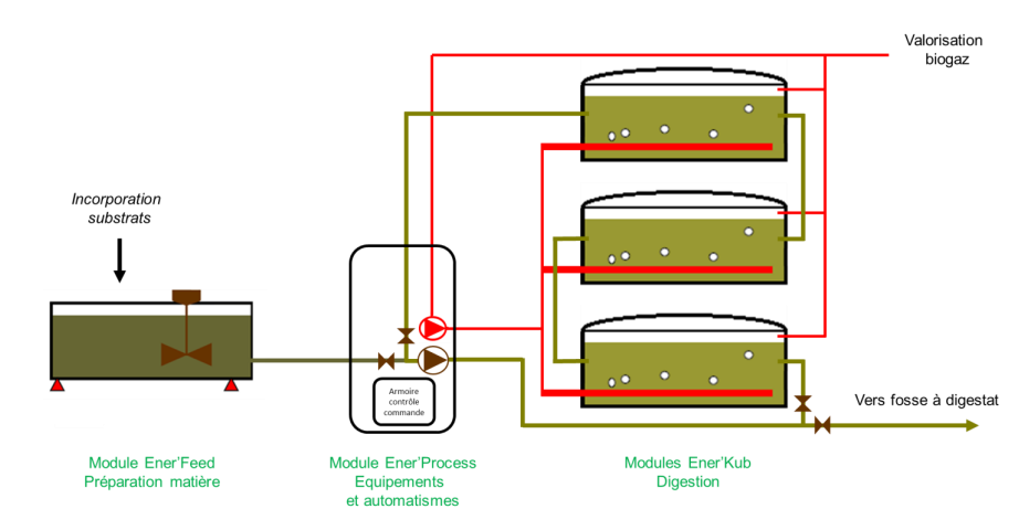 - Digesteurs préfabriqués de 90 m3 en acier ENERKUB, isolés (x volume souhaité) - forte productivité