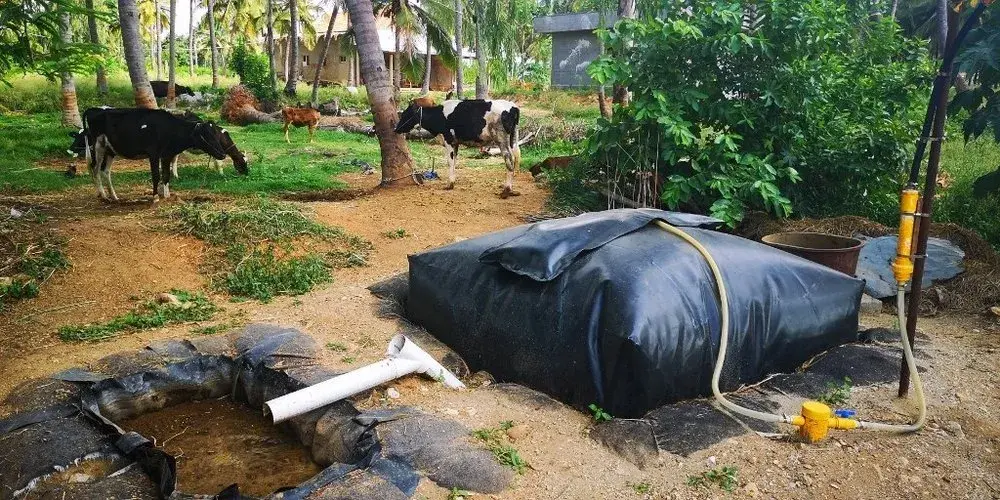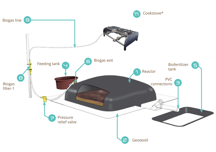 Kit composé du Digesteur souple 6, 12, 16, 20, 30 et 40 m3, tuyaux et vannes, réchaud gaz